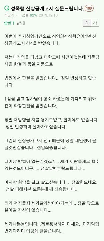 그래서 신상공개 또는 고지를 하는거야 범죄자 ㅅㅋ들아 그러니까 다음에 전자발찌╋신상공개 고지 원플러스원 싫거든 똑바로 살아