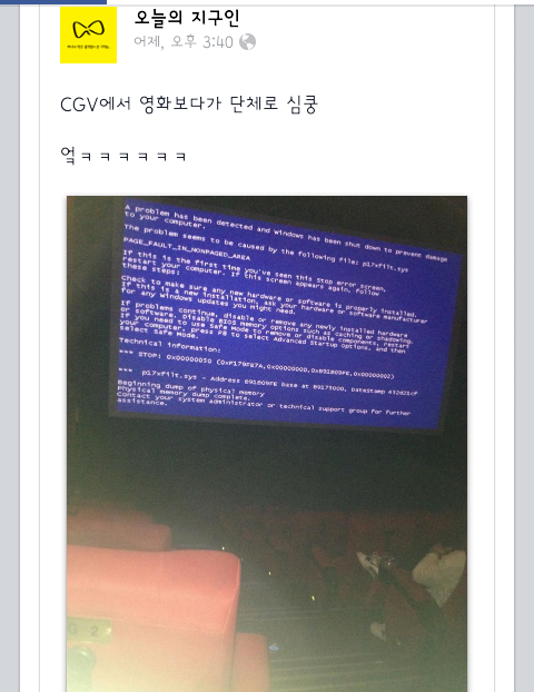 헐 블루스크린ㅋㅋㅋㅋ컴터좀 밀으셔야될듯ㅋㅋㅋㅋ
