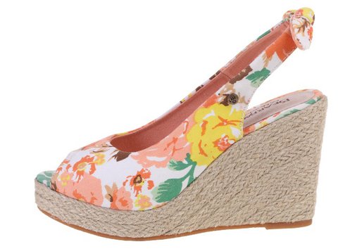 데이트 하는 날 로멘틱한 원피스에 함께 플라워 패턴의 편안한 웨지힐을