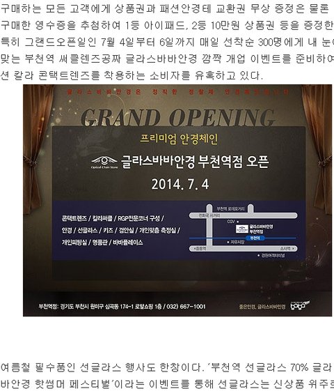 부천역에 있는 안경원 오픈행사로 콘택트렌즈를 3일동안 매일 300명씩 공짜로 쏜다네요.