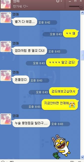 검도를 배운다고 결심했을때, 울 엄마 반응임.ㅠ (카톡PC버젼이에요)