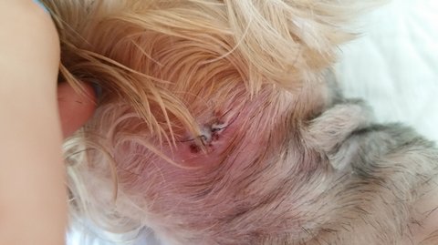 사진상으로는 가늠하기 어렵지만 목덜미의 상처 부위가 많이 부풀어 올라있습니다.