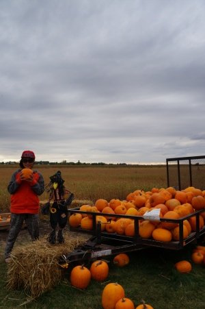 아무 농작물에 있는 호박을 들고 사진찍는데