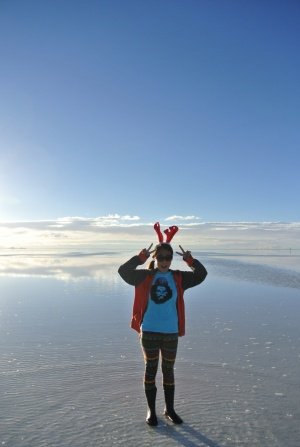 볼리비아 우유니 사막에서 장화신고 신났어요