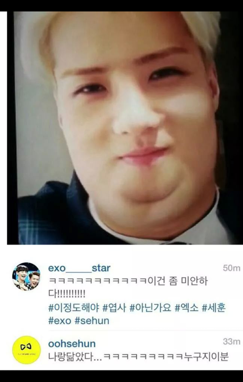 이건방금페북으로본건데..ㅋㅋㅋㅋㅋㅋㅋ왜이렇게.세훈이가 귀엽지....