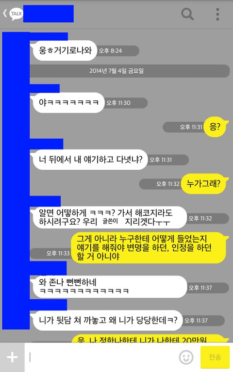 최대한 마음써서 너랑 그 이른 친구 이름은 지웠고 니가 많은 학교 애들한테 얘기한 거랑 내가 공개적으로 이렇게 얘기한 건 다를 게 없다고 생각해서 올린 거고 그래야 공평하니까 그렇지?