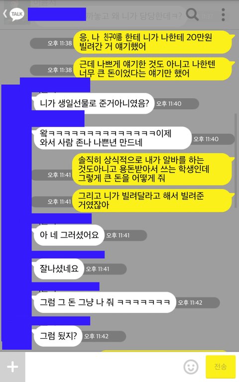 짧게 얘기할게요. 저번에 이친구가 급한 일이 생겼다며 20만원 좀 빌려달라고해서 없는 돈 모아가면서 빌려줬습니다. 빌려준 게 5개월이 훨 지났는데도 갚지않아서 친구한테 나한테는 큰 돈인데 언제쯤 받을 수 있을까라고 속마음을 털어놓으면서 조언을 구했습니다. 근데 그 친구가 과장되게 일러받쳤나봐요