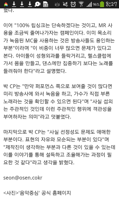 음악중심 립싱크한 이유가 이거아니야?