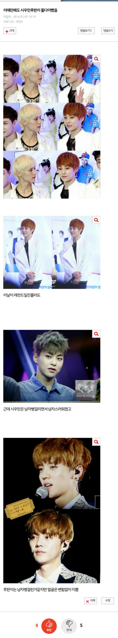 시우민이 잘생겨졌다는거에 꼴려서??