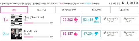 방심하면 안돼 얘들아ㅠㅠ새벽까지 우리가 38%였는데...투표 내일 월요일 낮12시 마감이니까 끝까지 밀어붙히자!!!
