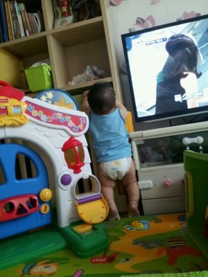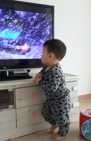 조금씩 걸을수 있다고 장난감 밟고 티비다이에 올라서고
