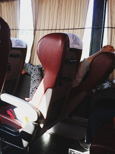 앞좌석에 아주머님이 타 계심에도 불구하고 버스.출발 직후부터 줄곧 앞좌석에 발올리고 에어컨에 발 말리고 가네요.