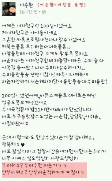 서강준이 과거에쓴 여자친구글..