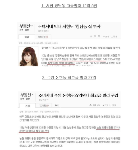사진有)소녀시대 재산현황
