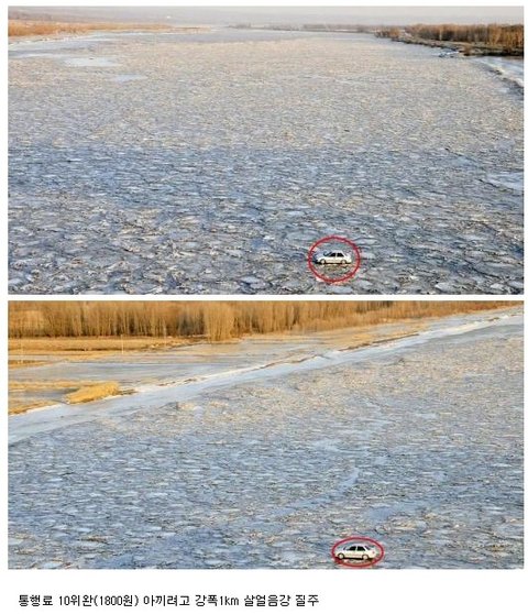 아스팔트 도로위에 장난감차인줄