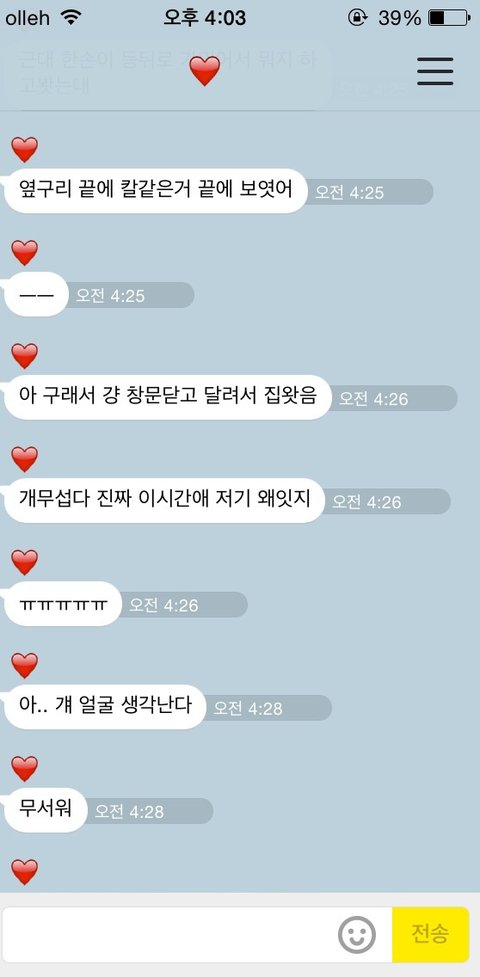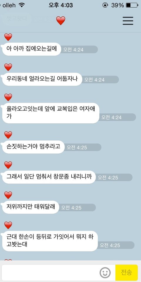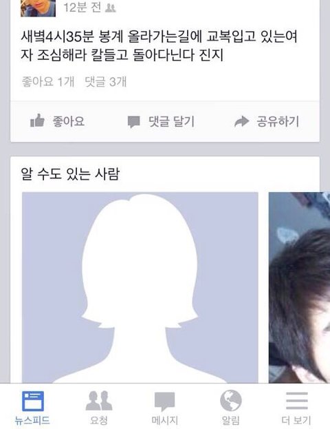 태워줬으면 진짜 죽엇을지도 몰라 ;; 근데 남자야 여자야? 교복입고...칼들고 있다니;; 와;;소름 돋는다 ..;; 바로 도망치고 신고부터 하는게 좋을듯