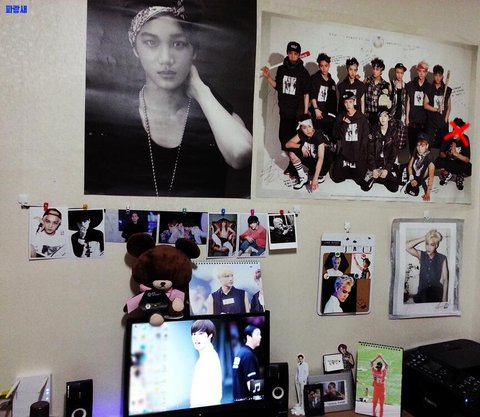 이사진에서 벽에걸려있는 핑크마마옆에 에스디는 뭐일때 에스디야?? 그리고 왼쪽에서 두번째 에스디도.. 그리도 밑에 으르렁 구포카뒤에 종인이 브이한건 뭐고?ㅠㅠㅠ 마지막으로!! 콘서트마다 vcr이 다달라??? 알려줘인어들ㅠㅍㅍㅍ