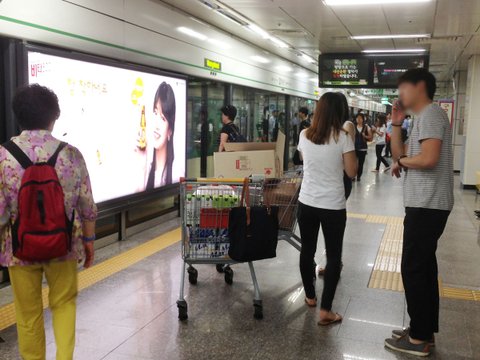 헐 지금 그거끌고 집에가는거야? 그것도 지하철로? 정말대박이다 길건너쇼핑몰카트가 아파트 단지에들어와있는것도 황당힐데 와~니짱먹어라