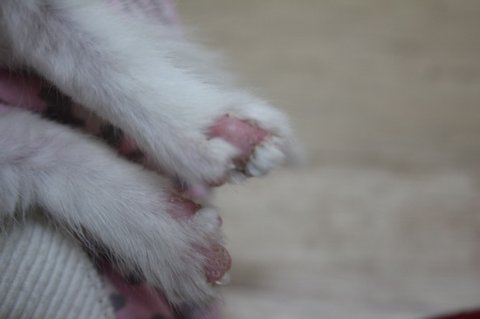 꼬리와 앞발 뒷발에서 저리 땜방들이.