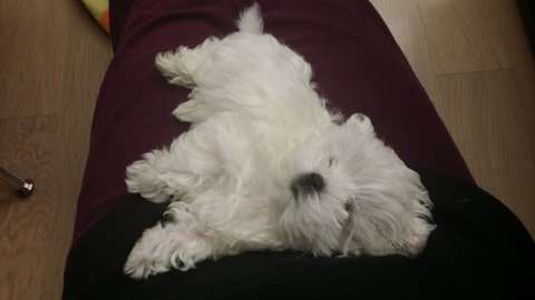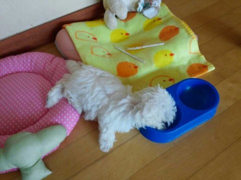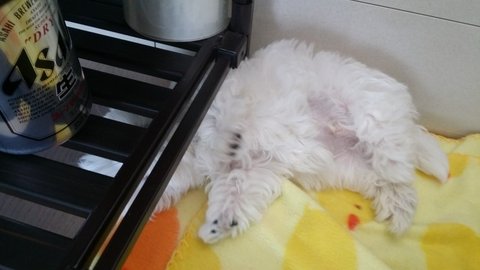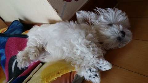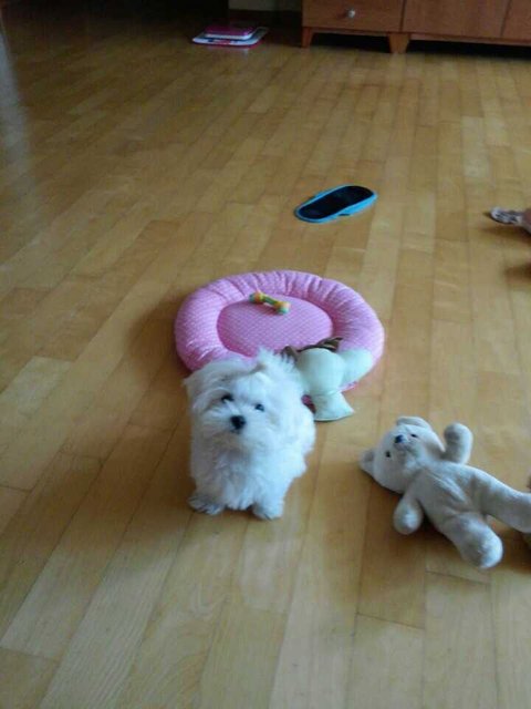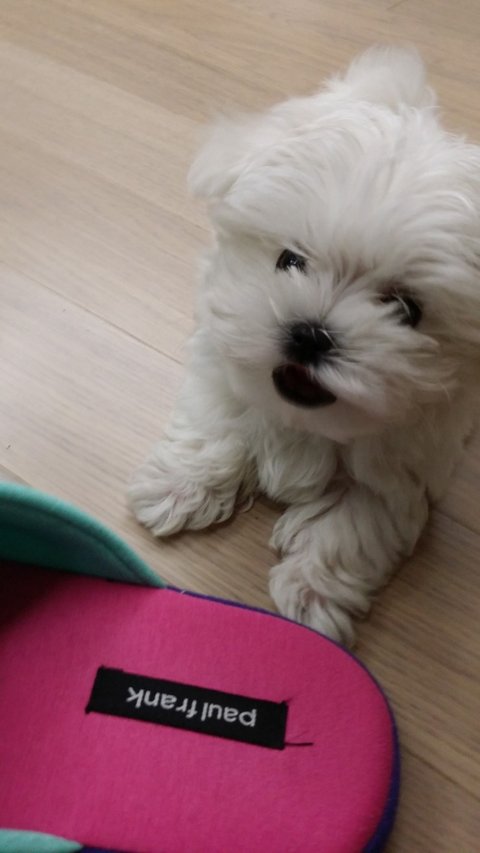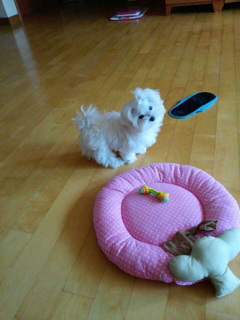 이제 6개월 된 우리 라떼를 소개합니다~ ^-^ 수컷 말티즈이고 친정부모님 두분이서 너무 적적하신 것 같아서 제가 분양받아 드린 애기예요~ 생후 39일 째에 처음으로 저희집에 왔네요-