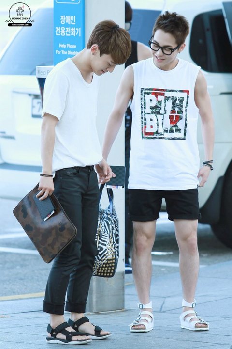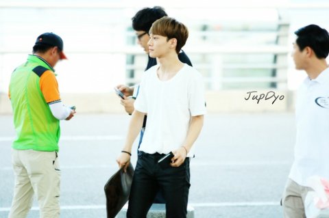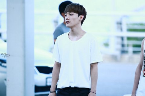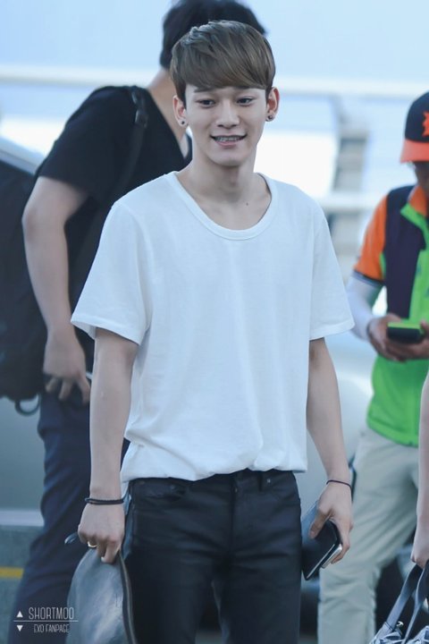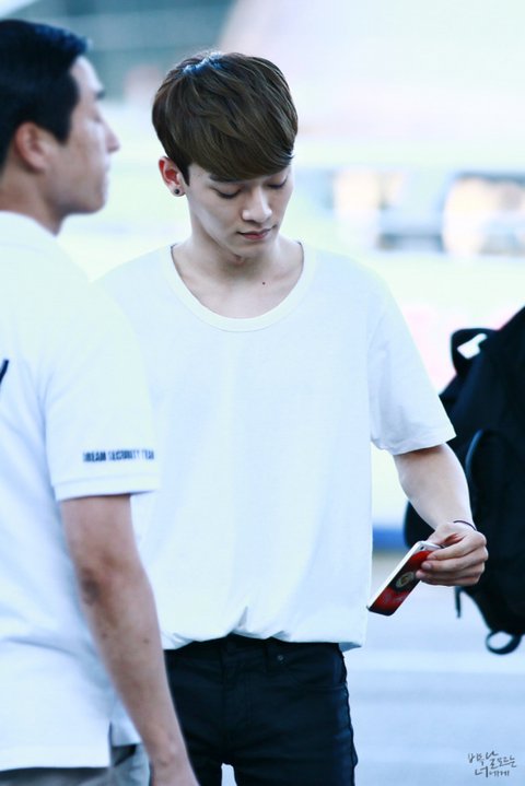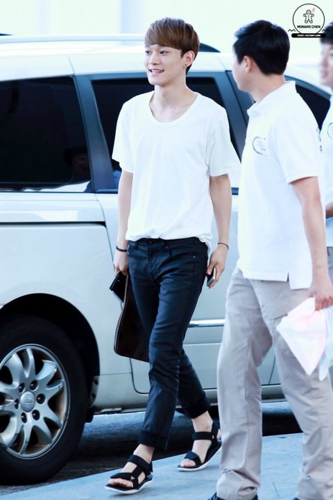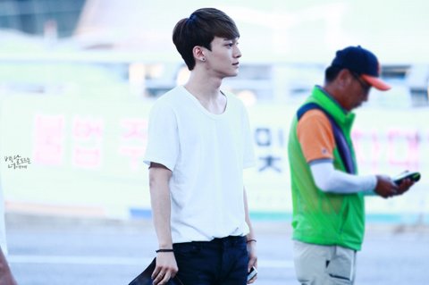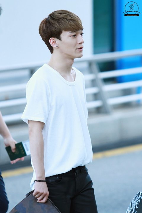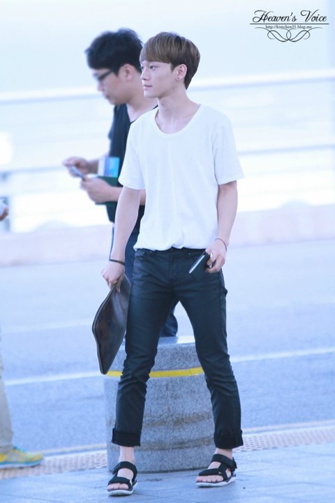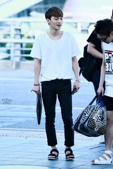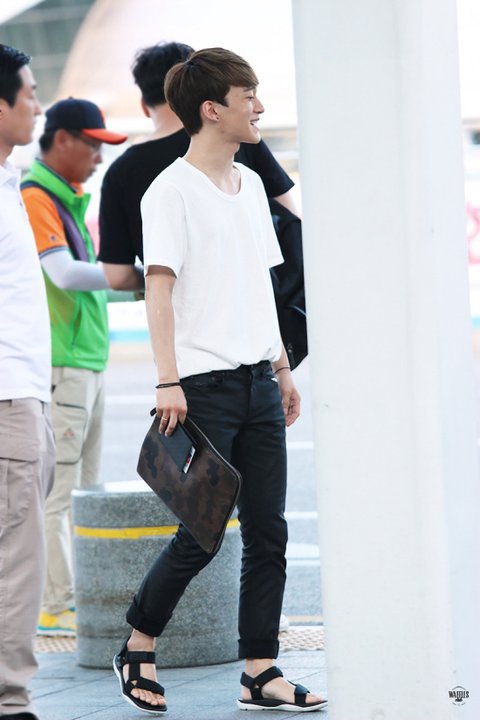 여름에 맞게 시원하면서도 깔끔하게 입은 첸의 공항패션