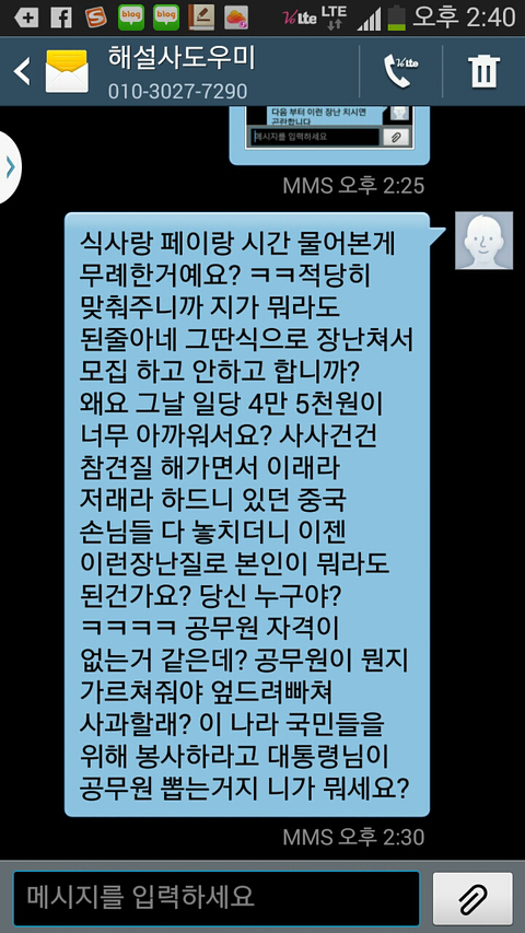 모르셨냐고 자기가 써놓은거 제대로 안보셨냐고 문자로