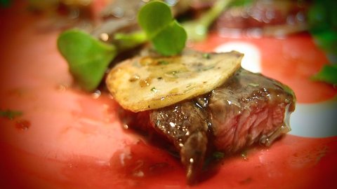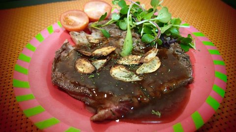 마늘칩을 기름에 튀겨서 올리면 나름의 데코도 되지만 스테이크의 맛을 더욱 풍부하게