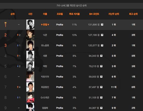 여초 투표 제외 수호가 이기는게 없음수호는 커뮤도 망함수호 뭐라도 1위 한거 있음? 상위권에 드는거 있어? 없잖아 뭔 수호>찬열이야 ㅂㅅ년이ㅋㅋㅋㅋㅋㅋㅋㅋ