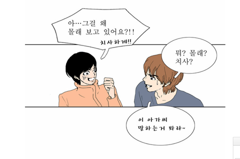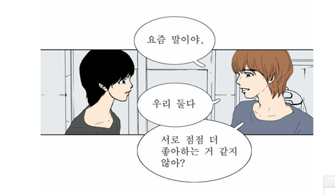 네이버 화요웹툰 강변살다인데 꿀잼ㅎㅎㅎㅎㅎㅎㅎㅎㅎ오늘만 좀 부끄부끄한 씬이 나왔는데 진짜 졸잼ㅜㅜ사진에 쟤말고 검은머리남주있는데 어깨가 아쥬그냥...ㅎㅎㅎㅎㅎㅎㅎ