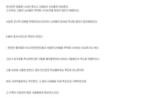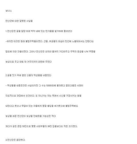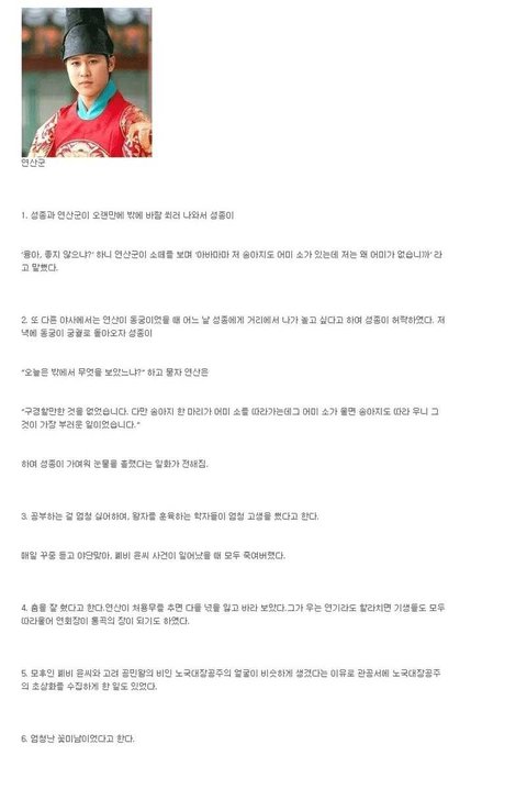 나는 역대 왕들 중... 연산이 제일 안타깝다. 불쌍한 왕이다. 단종도 그렇고. 광해군도 불쌍하고.