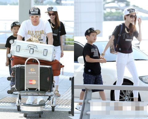 블랙앤 화이트로 공항패션을한 윤후네 가족~