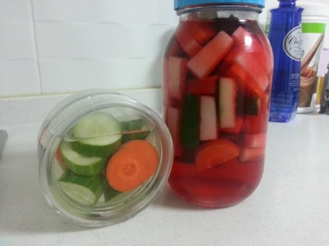 느끼함을 잡아주는 오이피클과 비트피클