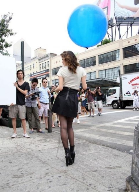 길거리에서 광고촬영을 하는 미란다커ㅋㅋ