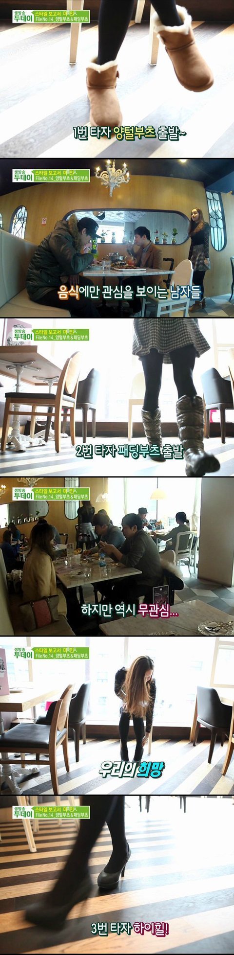 야 똑같은 여자가 밥먹는데 세 번 다른 신발 신고 왔다갔다하면 당연히 무슨 사이코인가 하고 쳐다보게 되지 뭐긴 뭐야