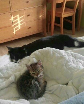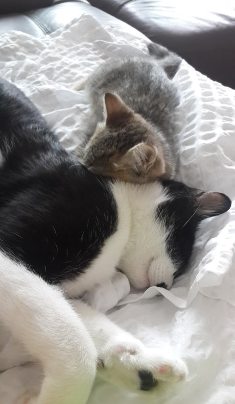 코코의 애정어린 그루밍으로 네네의 귓속 진드기도 없어지고, 젖은 털은 보송보송해졌어요! 이쁜 우리 코코!