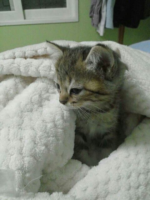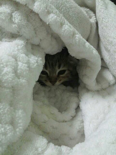 비맞은 생쥐마냥 귓털이 젖은 상태루 돌아다녔어요!