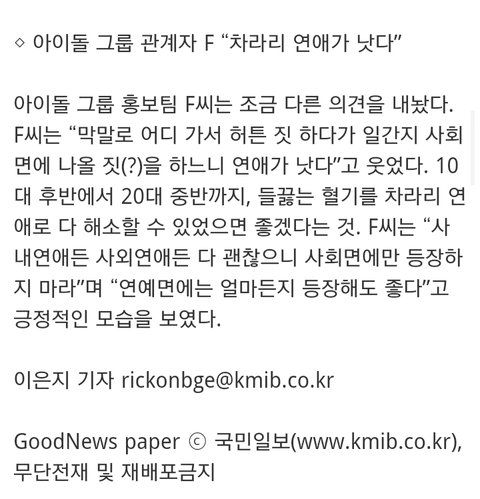 변태 연애에대한 아이돌과 연애관계자 생각 물어본 기사인데
