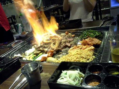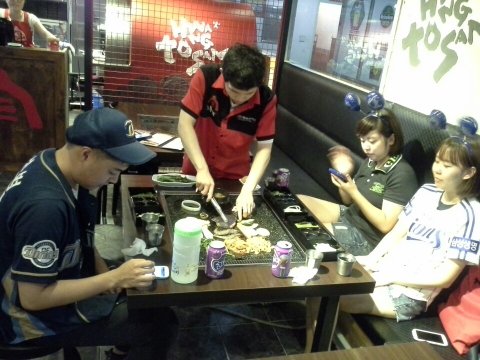 고기도 화덕에서 초벌해서 나오는데 두툼하고 고기도 마싯어요 고기에 화통삼이라고 딱 찍혀있내요~씐기씐기~ㅎㅎ불쇼도 해줘요~~~고기다먹고도 아쉽다면 밥도 볶아주고 하트만들어줘요~진짜 여기 화통삼 정말 추천합니다!!