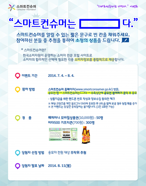 스마트컨슈머는 한국소비자원과 공정거래위원회가 함께하는 소비자전문포털사이트입니다.