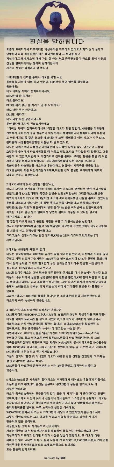트윗하는애들이나 베티나 인티하는애들 퍼뜨려줘!! 타오가 또 욕먹나봐 ..
