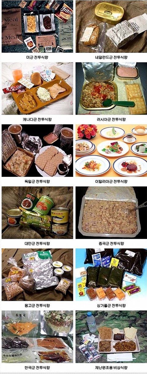어느 나라 전투식량이 더 든든할까요? 한국은 포장을 저래해서 그런가 좀 부실해보이네요 ㅠㅠ