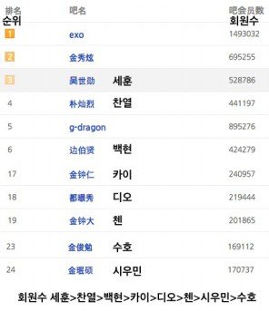 힌국멤버 바이두 회원수