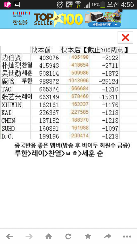 카이팬들이 카이순위 2위 만들어놓았더니 이제