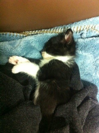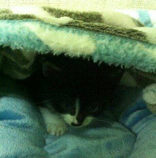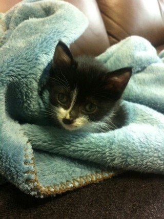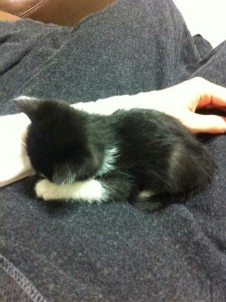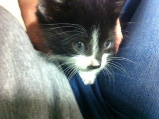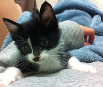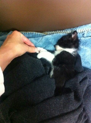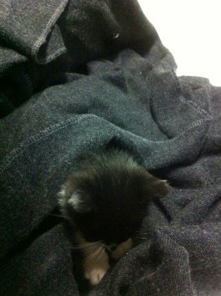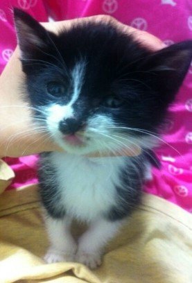 남편 품에 조그마한 고양이가 있는거예요!