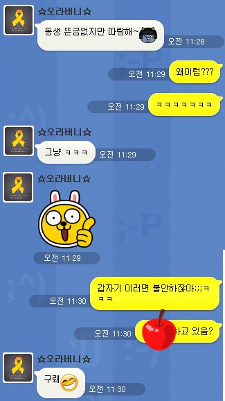 그래봤자 무뚝뚝한 경상도 남자일 뿐이었던 이 오빠님이 오늘 갑자기 뜬금없는 톡을 날림.
