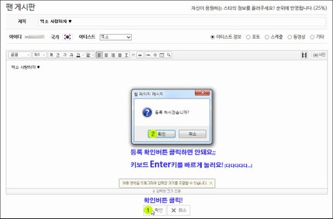 아직도 도배 방법을 몰라 글을 하나씩 올리는 팬이 보여 안타깝더라구요^^;;