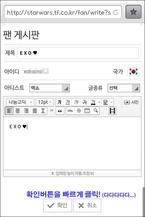 아직도 도배 방법을 몰라 글을 하나씩 올리는 팬이 보여 안타깝더라구요^^;;