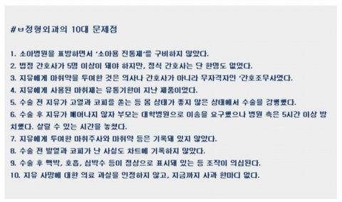 나 이거 병원 잘못은 분명히 있을 거 같은데 그런데 한가지 걱정되는 건 부검결과가 왠지 지방색전증이나 폐색전증으로 나왔을 거 같은 느낌이다. 기사 검색해 봤더니 5월달에 부검은 이미 했다는데 보통 이런 이슈가 된 사건은 그럼 6월 말에는 부검 결과가 나오는데 만약 지방 색전증 이런거면 골절당시 뼈속에 있던 지방이 혈관을 떠돌다가 중요 혈관을 막는 거라 진짜 안타깝기는 해도 병원에서도 막을 수 없는 불가항력적이었던 거고 그러나 마취 이런 쪽에 과실이나 잘못이 있다면 반드시 병원쪽이 책임을 져야 하는거고 자살한 의사분도 안타깝지만 중요한 건 진실이니깐 진짜 부검결과를 통해 진실이 밝혀지는 게 중요하다