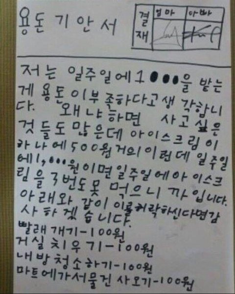 귀여운 딸내미의 용돈 기안서 ㅋ.jpg