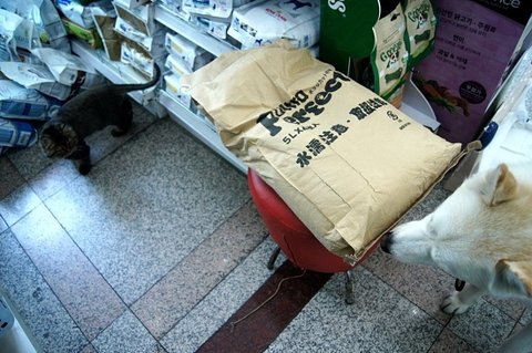 마이에게 관심을 보이나 했는데..ㅋㅋ 사료에.ㅋㅋ